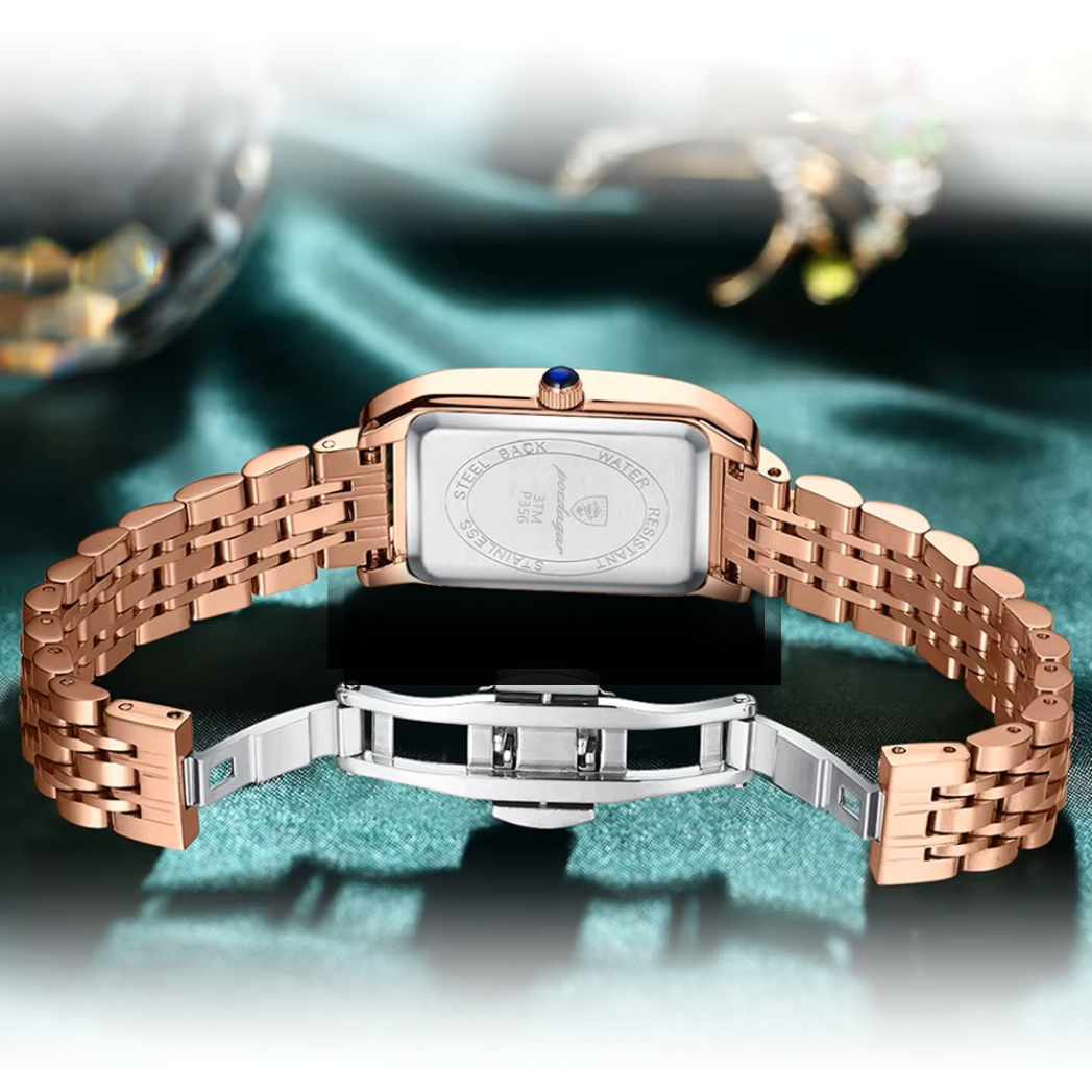 Cuarzo (MIYOTA 2415)- El movimiento es de cuarzo, lo que significa que funciona con pilas. Un movimiento de cuarzo es fácil de mantener y garantiza que el reloj funcione siempre con precisión.